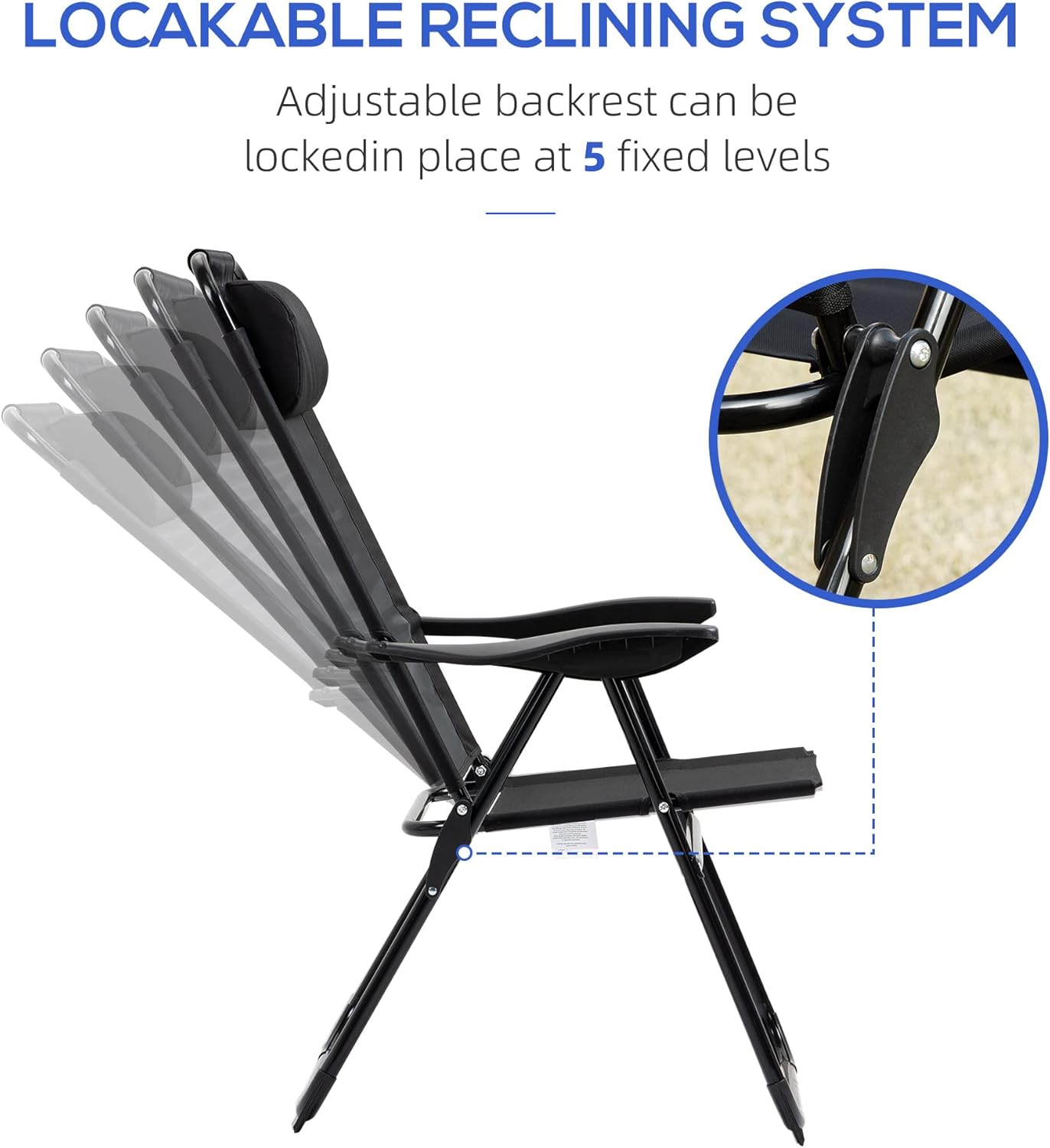 Outsunny Folding Patio Chairs Set of 2, Outdoor Deck Chair with Adjustable Sling Back, Camping Chair with Removable Headrest for Garden, Backyard, Lawn, Black