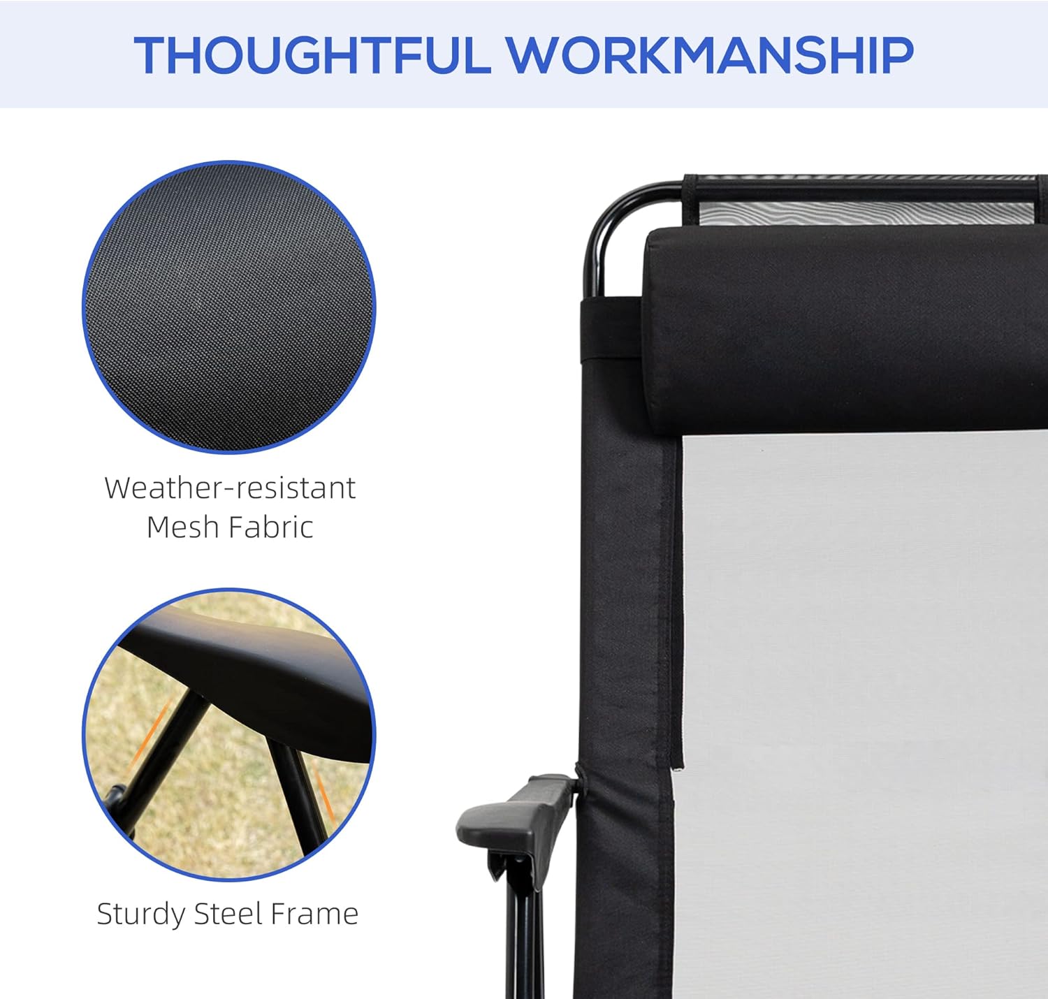 Crafted with durability and style in mind, these outdoor deck chairs feature adjustable sling backs, allowing you to find the perfect seating position for maximum comfort. The removable headrest adds an extra level of support, making these chairs ideal for extended periods of relaxation.