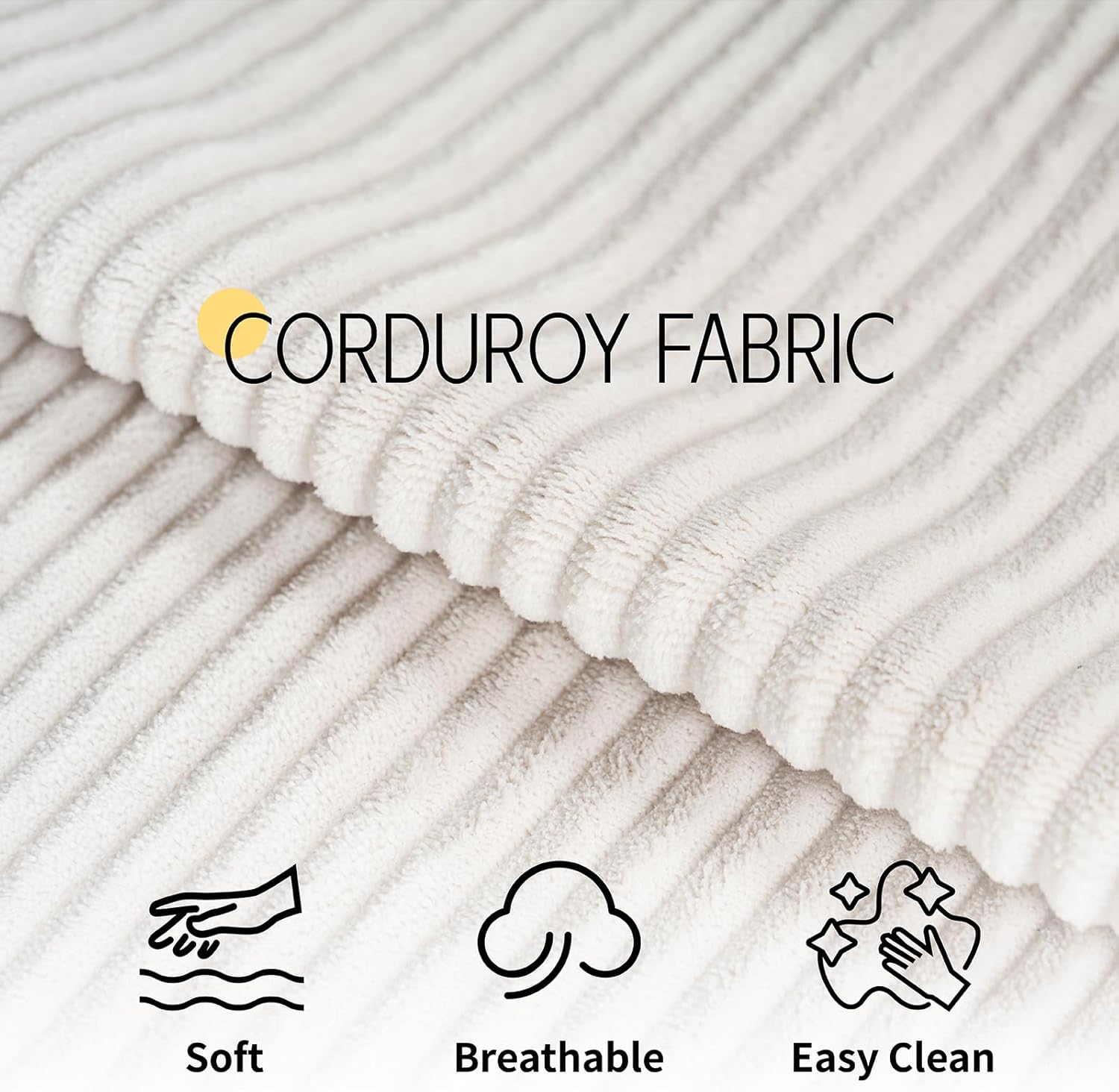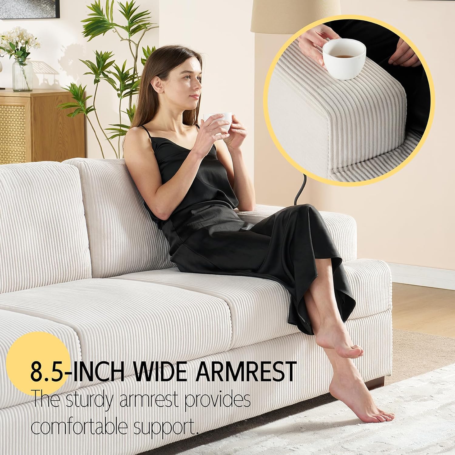VanAcc 89in Comfy Couch, 3 Seater Sofa with Wood Legs, Deep Seat Sofa- White Corduroy Modern Couch for Living Room